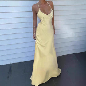 Damen Elegantes Maxikleid mit tiefem V-Ausschnitt und verstellbaren Spaghettiträgern Stilzeits