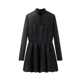 Damen elegantes Minikleid mit transparenten Ärmeln und hohem Kragen Stilzeits