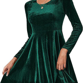 Damen Elegantes Samtkleid mit geschwungenem Saum und langen Ärmeln Stilzeits