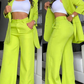 Unser Damen Blazer- und Hosen-Set kombiniert Stil mit Komfort und ist perfekt für jede Gelegenheit. Dieses Ensemble zeichnet sich durch moderne, weite Hosen und einen eleganten Blazer aus, der Ihrer Garderobe einen Hauch von Frische verleiht.