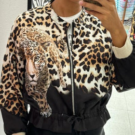 - Atemberaubendes Design: Die Jacke besticht durch ihr auffälliges Leoparden-Motiv, das jedem Outfit einen Hauch von Wildheit verleiht.