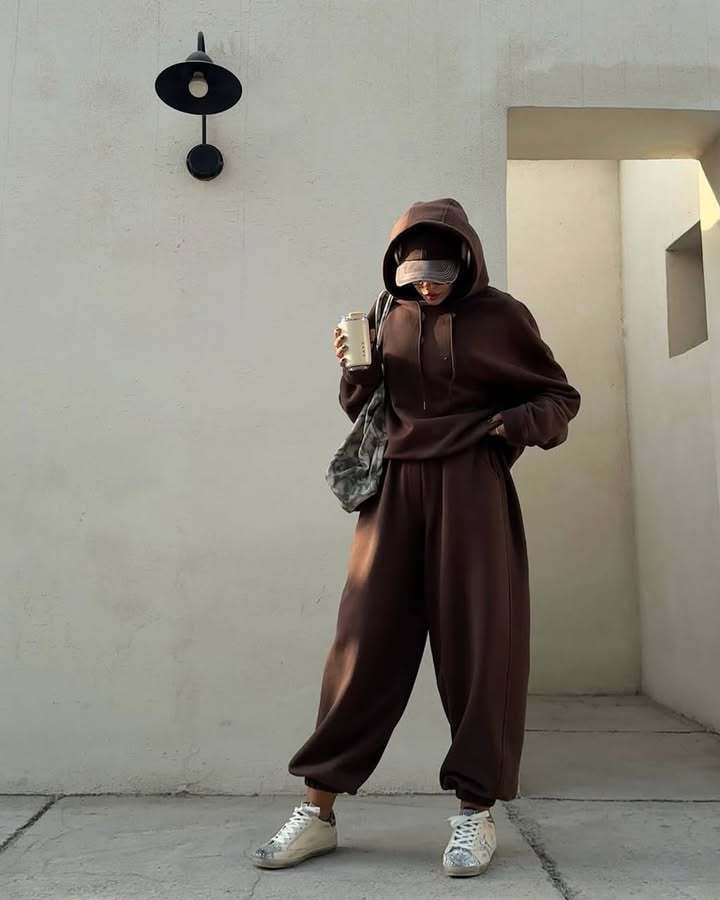 - Design: Oversized Hoodie mit Kängurutasche und lässigen Bündchen an den Ärmeln und Hosenbeinen für einen modernen Look.