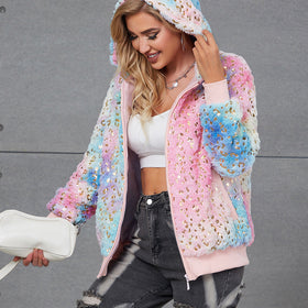 Damen Flauschige Kapuzenjacke mit glitzernden Akzenten Stilzeits