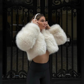 Damen Flauschige Kurzjacke mit voluminösen Ärmeln Stilzeits