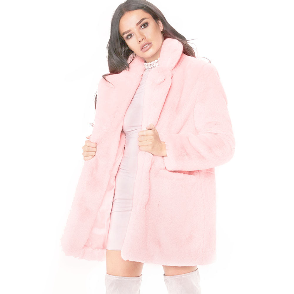 Damen Flauschige Langjacke aus Kunstpelz mit Kapuze Stilzeits
