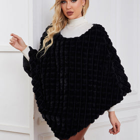 Damen Flauschiger Kunstpelzponcho mit strukturiertem Design und weichem Innenfutter Stilzeits
