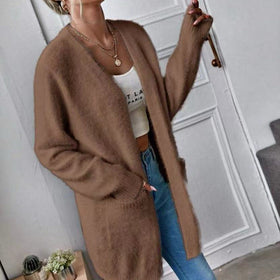 Damen Flauschiger Offener Cardigan aus weichem Material Stilzeits