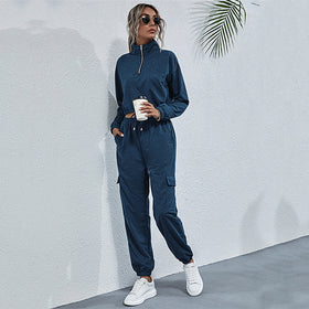 Damen Freizeit-Jumpsuit mit halbem Reißverschluss und praktischen Taschen Stilzeits