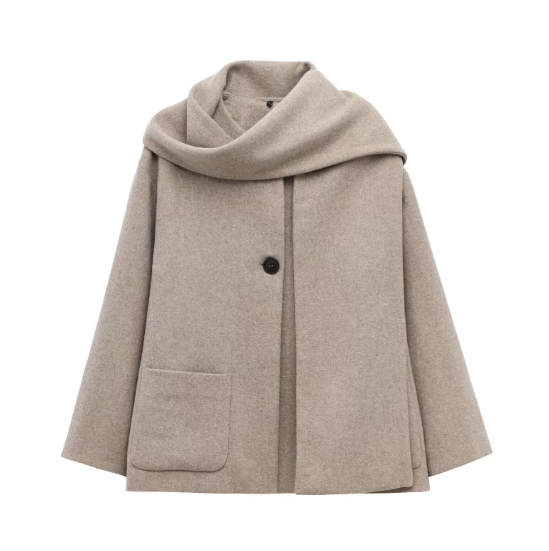- Stilvoller Drapierter Schalkragen: Ein anspruchsvolles Detail, das einen Hauch von Eleganz und visuellem Interesse hinzufügt.
