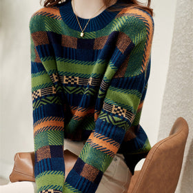 Entdecken Sie den perfekten Begleiter für kühle Tage mit unserem Damen gemusterten Strickpullover. Dieser stilvolle Pullover vereint Komfort und Eleganz und lässt sich mühelos in jede Garderobe integrieren.