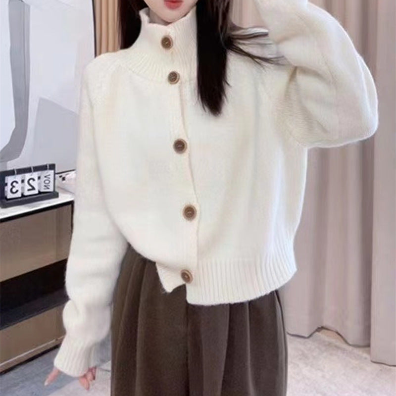Damen gemütliche Strickjacke mit hohem Kragen und dekorativen Knöpfen Stilzeits