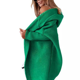 Damen gemütlicher Strickcardigan mit Kapuze und weit geschnittenen Ärmeln Stilzeits