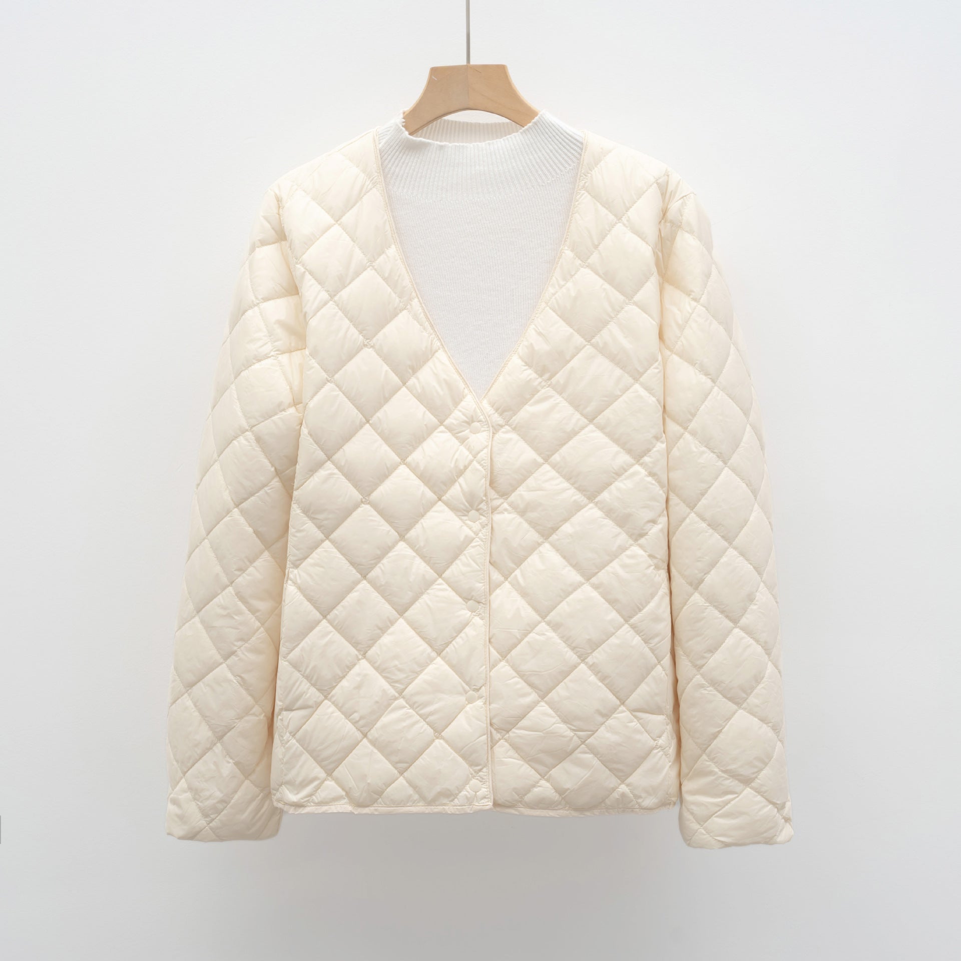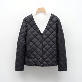 Damen gesteppte Übergangsjacke mit modernem V-Ausschnitt und knöpfbarem Verschluss Stilzeits