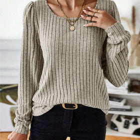 Damen Gestreifter Pullover mit Puffärmeln Stilzeits