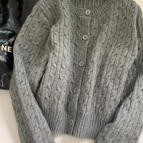 Die Jacke ist aus hochwertigem, weichem Material gefertigt, das angenehme Wärme und Bewegungsfreiheit gewährleistet. Das trendige Zopfdesign verleiht der Jacke einen modernen und verspielten Touch, während der cropped Schnitt eine lässige Silhouette schafft.