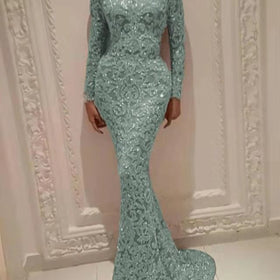 Damen Glamouröses Hochzeitskleid mit funkelnden Pailletten und langen Ärmeln Stilzeits