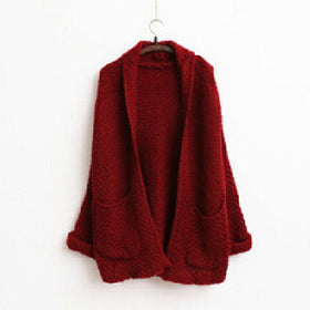 Damen grober Strick-Cardigan mit offenen Ärmeln und praktischen Taschen Stilzeits