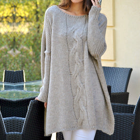 Damen Grobstrick Pullover mit klassischem Zopfdesign und weitem Schnitt Stilzeits