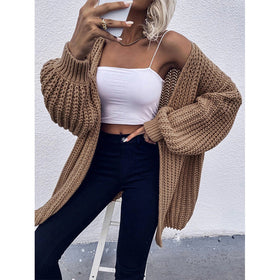 Damen Grobstrickjacke mit voluminösen Ärmeln und offener Front Stilzeits
