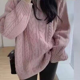 Damen Grobstrickpullover im lässigen Oversized-Stil mit Zopfmuster Stilzeits