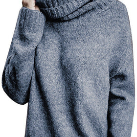 Damen Grobstrickpullover mit hohem Kragen und lässigem Schnitt Stilzeits