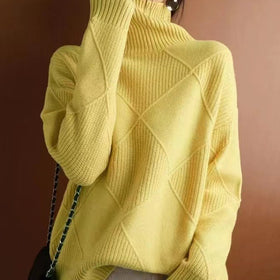 Damen Grobstrickpullover mit schickem Rollkragen und strukturiertem Muster Stilzeits