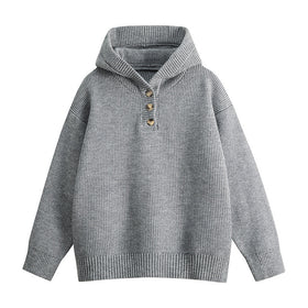 Damen Hochwertiger Strickpullover mit Stehkragen und Knopfdetails Stilzeits
