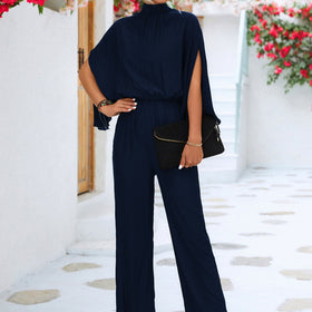 Damen Jumpsuit mit hohem Kragen und fließenden Ärmeln Stilzeits