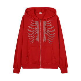 Damen Kapuzenjacke mit einzigartigem Skelett-Design und funkelnden Strasssteinen Stilzeits