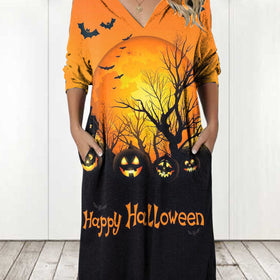 Damen Kapuzenkleid mit Halloween-Motiv und praktischen Taschen Stilzeits