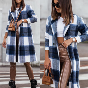 Damen Karierter Oversized-Wintermantel Stilzeits