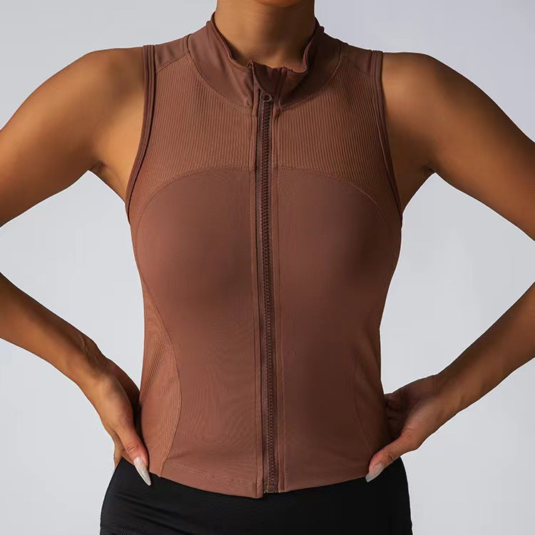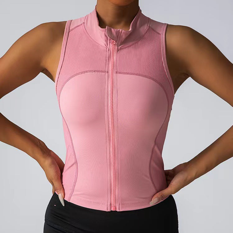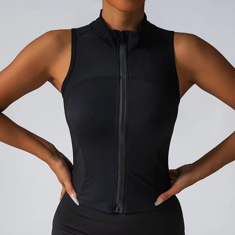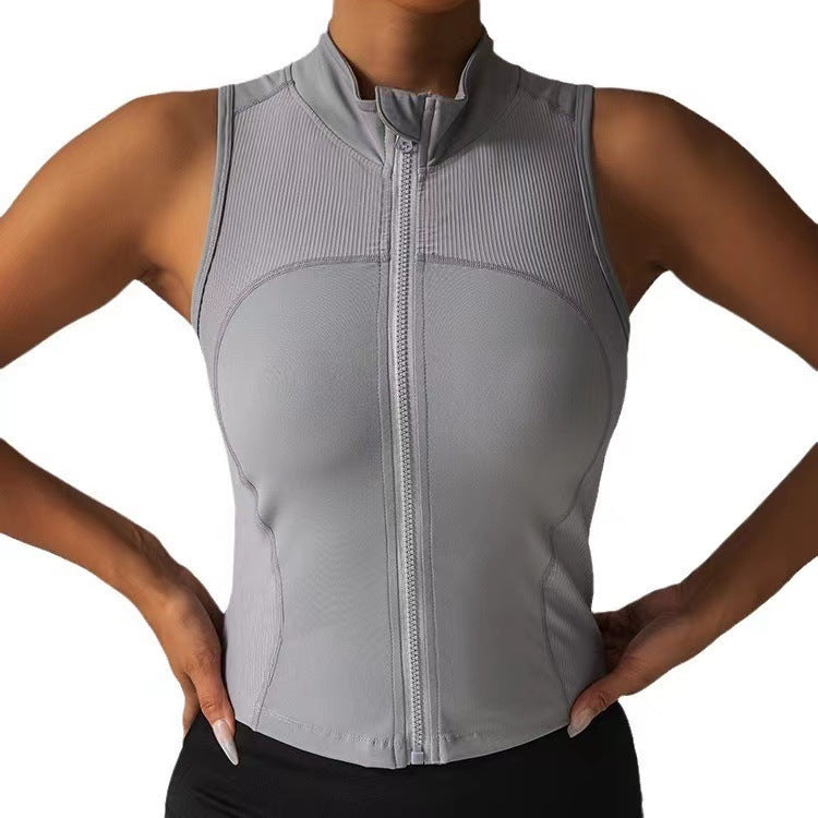 Damen Körperbetonendes Sportoberteil mit Reißverschluss und Stehkragen Stilzeits
