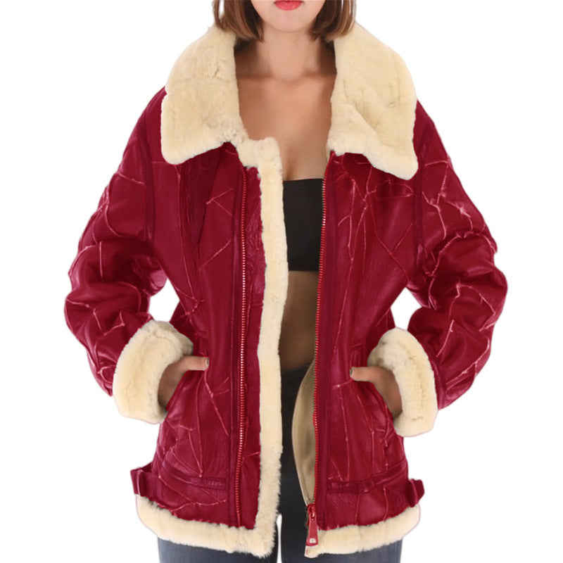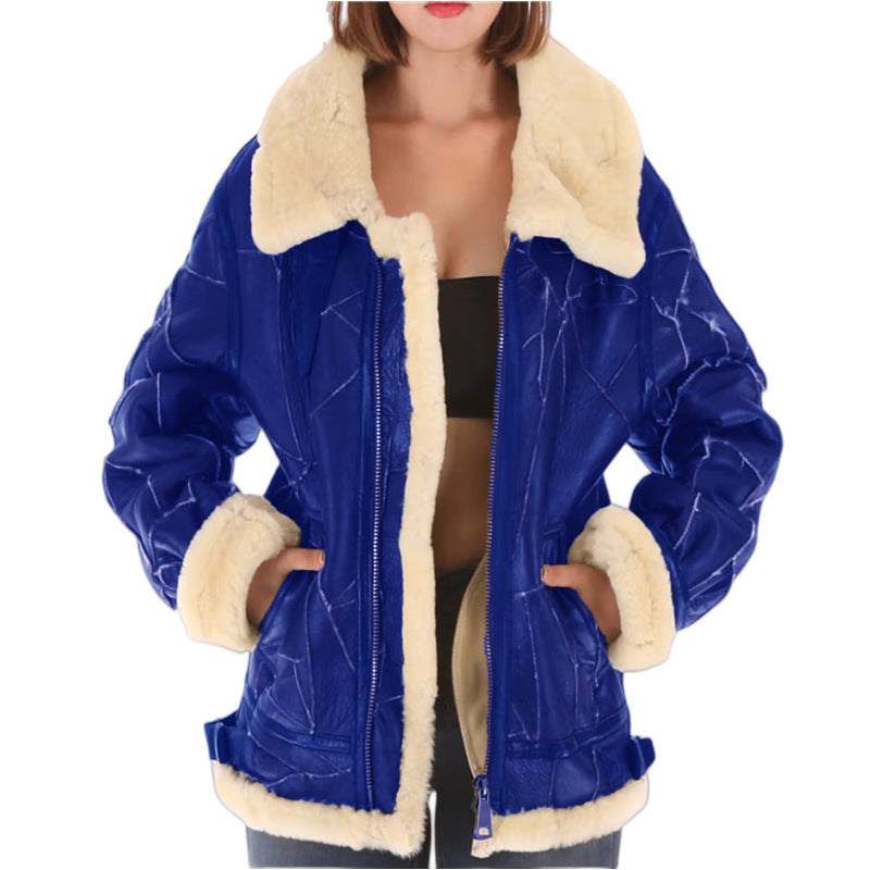 Damen Kunstfell gefütterte Pilotenjacke Stilzeits