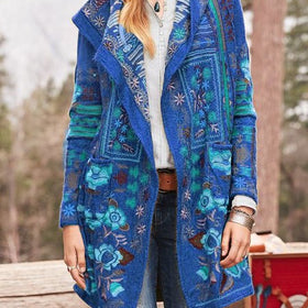 Damen kunstvoll bestickte Strickjacke mit Kapuze und Taschen Stilzeits