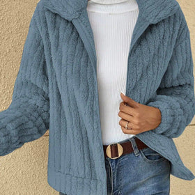 Damen Kuschelige Fleecejacke mit hohem Kragen und texturiertem Design Stilzeits