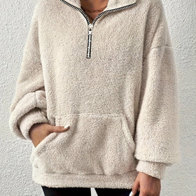 Damen kuscheliger Fleece-Pullover mit halbem Reißverschluss und Seitentaschen Stilzeits