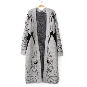 Damen Lange Strickjacke mit kunstvollem Muster Stilzeits