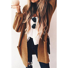 Damen lässige Strickjacke mit offenen Taschen und U-Förmigem Schnitt Stilzeits
