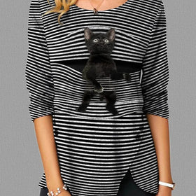 Damen lässige T-Shirt mit Katzenmotiv Stilzeits