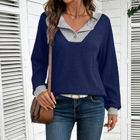 Damen lässiger Langarm-Pullover mit Hemdkragen und dekorativem Schnitt Stilzeits