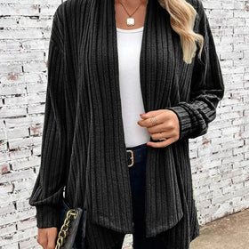 Damen lässiger Strickcardigan mit markantem Rippdesign Stilzeits