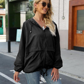 Damen leichte und atmungsaktive Windbreaker-Jacke mit verstellbarem Kapuzenkragen Stilzeits