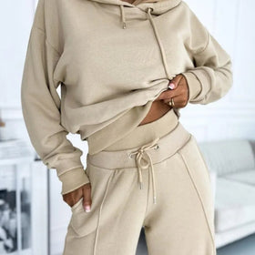 Damen Loungewear Set - Kapuzenpullover mit Kordelzug & Weite Bein Hosen