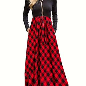 Entdecken Sie unser atemberaubendes Damen Maxikleid, das mit einem modernen Karomuster und eleganten langen Ärmeln begeistert. Dieses Kleid kombiniert stilvolles Design mit höchstem Komfort, ideal für besondere Anlässe oder lässige Tage.