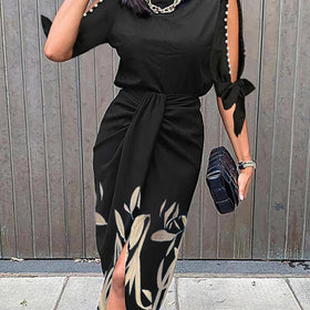 - Chic Design: Mit modischen Cut-Out-Ärmeln und eleganten Perlendetails ist dieses Kleid ein echter Hingucker.