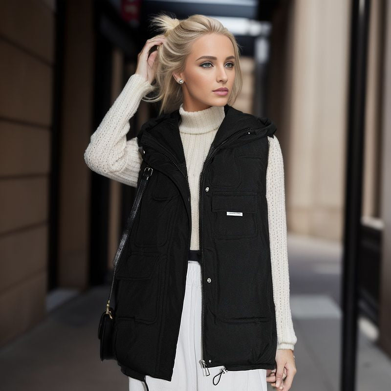 Damen modische gesteppte Weste mit praktischen Taschen und wandelbarem Kragen Stilzeits