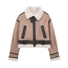 Holen Sie sich die Damen modische Kurzjacke mit Schurwollkragen und Reißverschlusstaschen Stilzeits und setzen Sie ein modisches Statement!