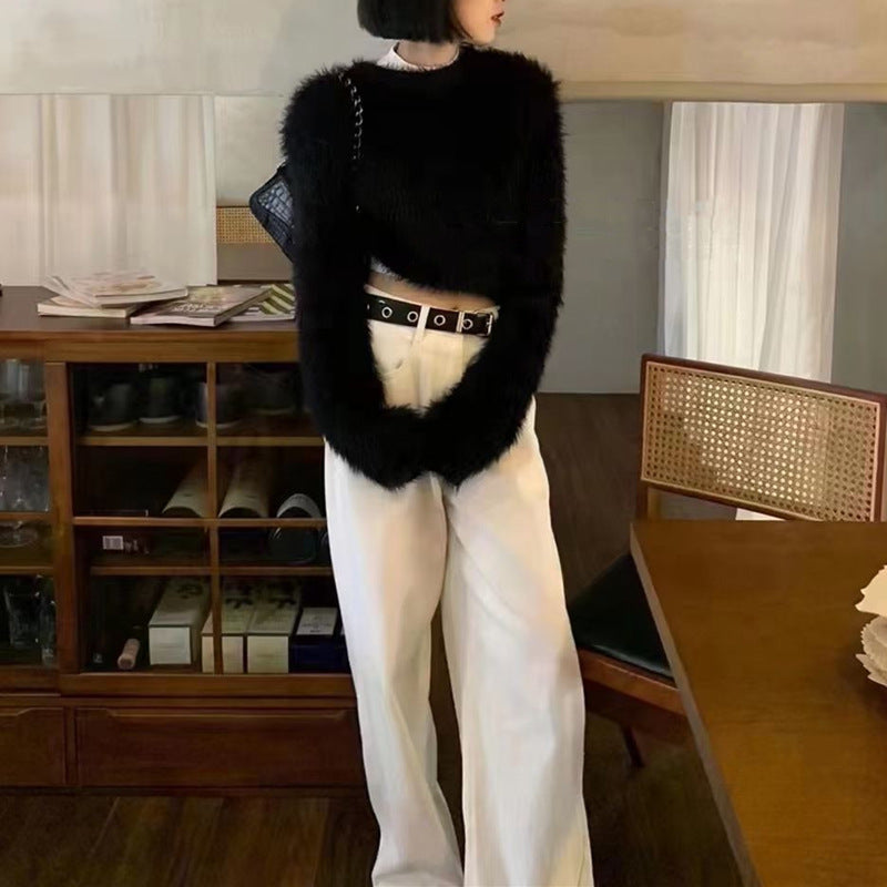 Damen modischer cropped Pullover mit weichem Flausch-Material Stilzeits