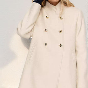 Damen modischer kurzer Mantel mit doppelter Knopfreihe und eleganter Stehkragen Stilzeits