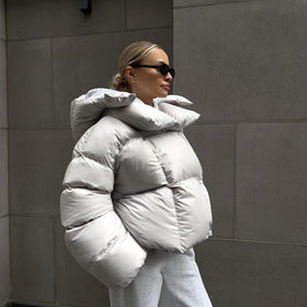 Damen oversized Daunenjacke mit hohem Kragen und voluminösen Ärmeln Stilzeits